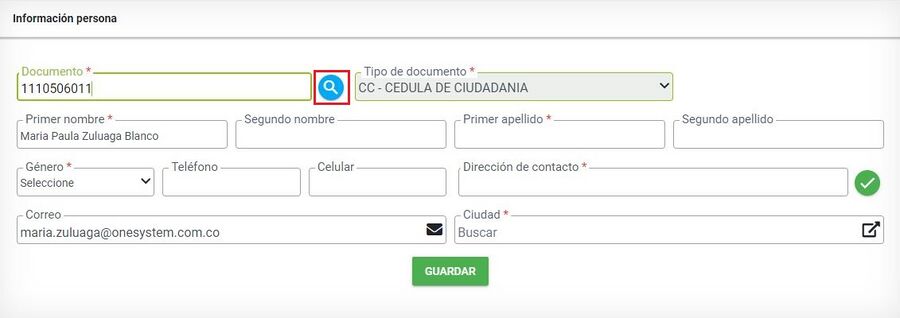 Si la persona no existe el sistema habilita todos los campos para su registro. Diligencia los campos nombrados a continuación, recuerde que los que tienen * son obligatorios: | Si la persona no existe el sistema habilita todos los campos para su registro. Diligencia los campos nombrados a continuación, recuerde que los que tienen * son obligatorios: | ||