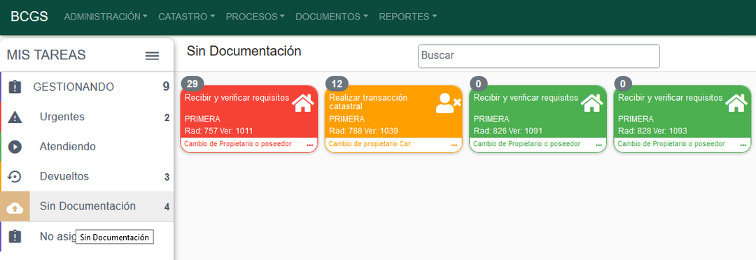Las tareas de los trámites son representadas a través de una tarjeta, en la cual se consolida la siguiente información