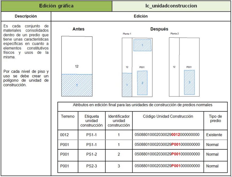 Las tablas que se muestran a continuación son el insumo principal para creación del atributo identificador de la capa lc_unidadconstruccion