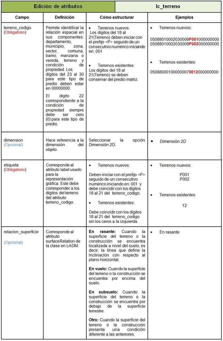 Las tablas que se muestran a continuación son el insumo principal para creación del atributo identificador de la capa lc_unidadconstruccion