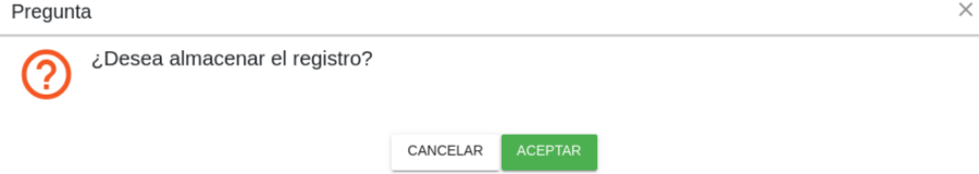 El sistema muestra un mensaje de validación para guardar el registro.