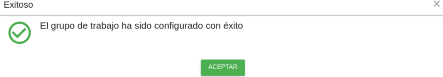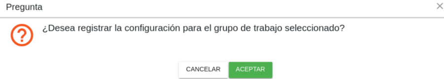 El sistema valida si se desea registrar el grupo de trabajo.