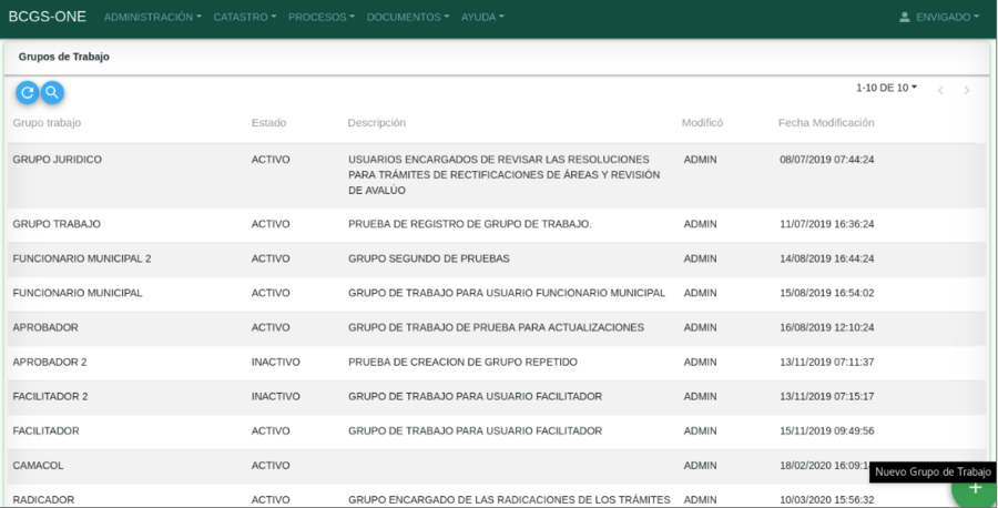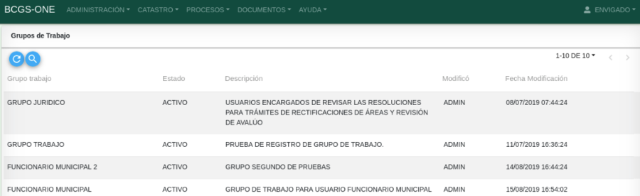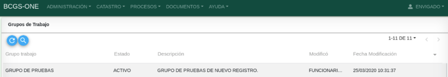 Para acceder a la funcionalidad ingresar por la opción de menú PROCESOS / Grupos de Trabajo