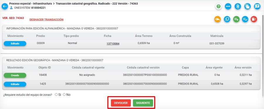 En esta actividad se habilita el botón comparar versión geográfica, la cual permite visualizar la segregación o englobe mediante el visor.