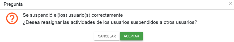 • Si se desea reasignar las actividades a los usuarios suspendidos, seleccione el botón ACEPTAR