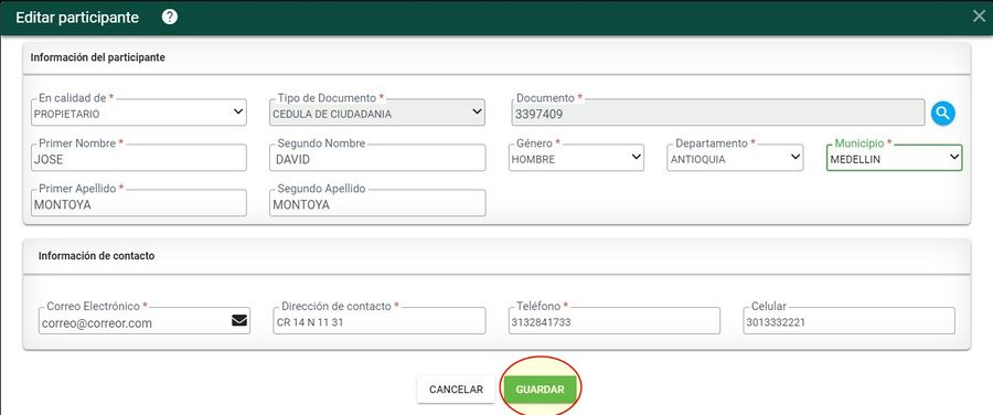 Si requiere editar la información registrada previamente, seleccionar el botón EDITAR y Modifica la información necesaria y posteriormente dar clic en GUARDAR