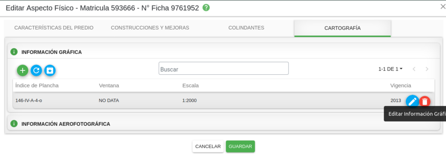 Seleccionar la pestaña Cartografía y el botón editar información gráfica o aerofotográfica