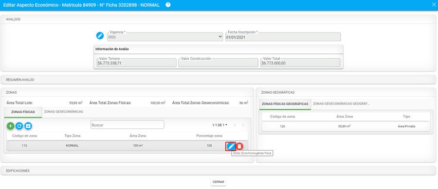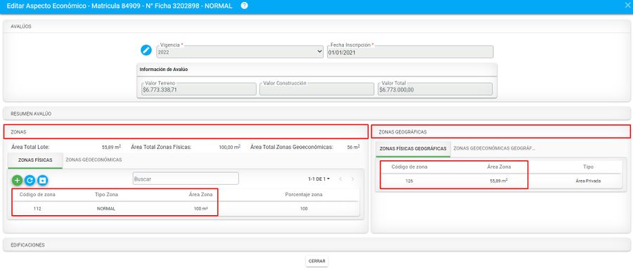 Finalmente ingrese el área de la zona física, tomándola de la información geográfica.