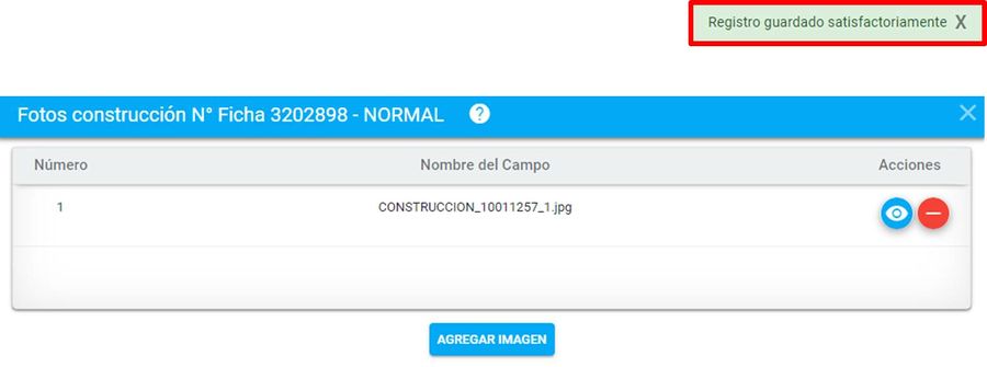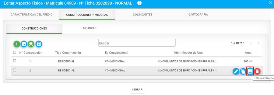 Hacer clic en el botón Fotos Construcción cuando se desee visualizar o agregar una fotografía de la construcción.