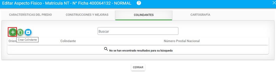 Seleccionar la pestaña de Colindantes y el botón Crear colindante