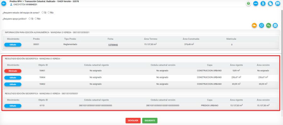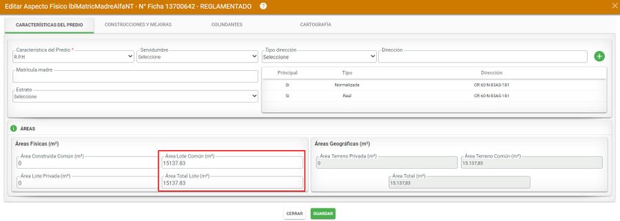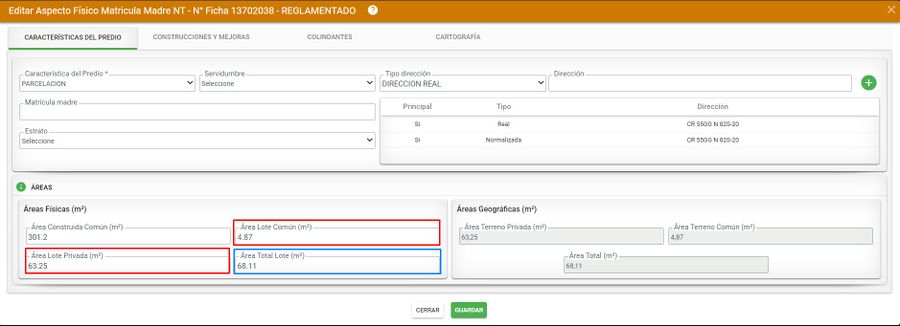 El sistema asigna masivamente la dirección para las dos unidades prediales del primer edificio. Tenga en cuenta que es posible modificar manualmente dichas direcciones.