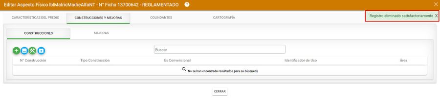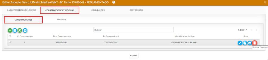 5. Construcciones: En esta hoja se ingresa la información de las construcciones comunes que tendrá el predio matriz, si no se tiene no es necesario diligenciarlo