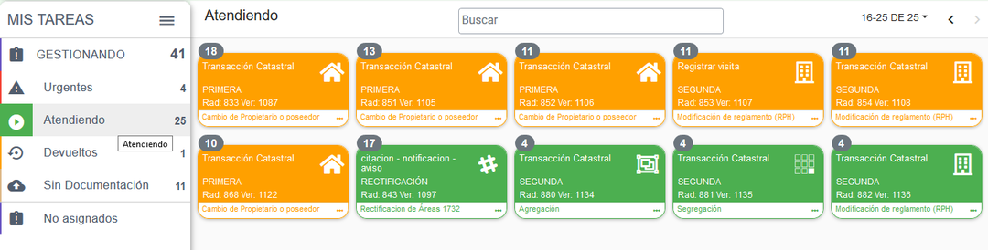 Cuando se realiza el proceso de login en el sistema, se carga el Panel de MIS TAREAS, en el cual se visualizan todos los trámites que se encuentran para gestión del usuario.
