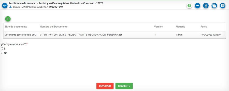 Se adjunta el documento y en la pregunta ¿Se completaron los documentos? marcar la opción SI y oprimir Siguiente