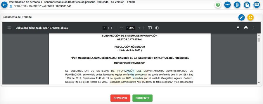 Si se requiere corregir alguna información de forma sobre la resolución, seleccionar el botón Editar documento.