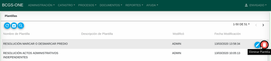 Seleccionar el botón Editar Plantilla, modificar la información y seleccionar el botón GUARDAR.