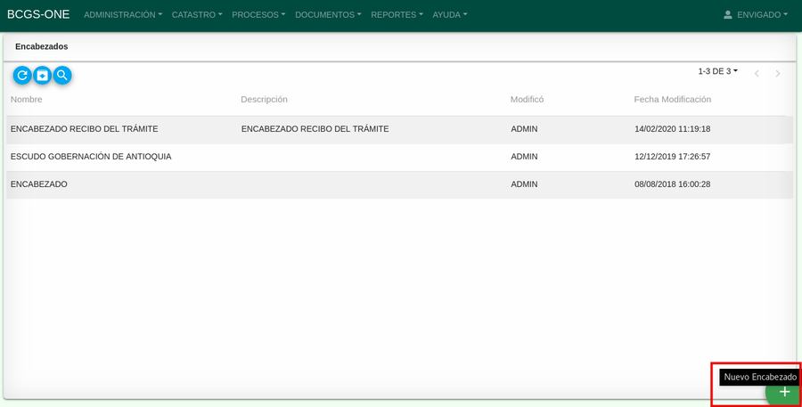 Seleccionar el menú DOCUMENTOS → Encabezados