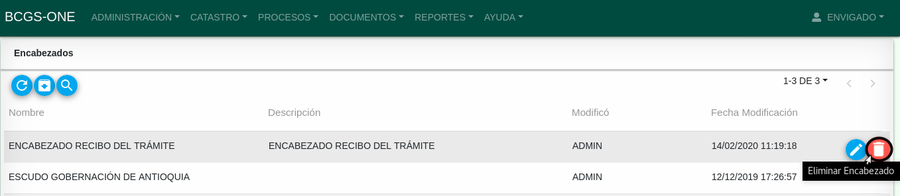Seleccionar el botón Editar Encabezado, modificar la información y seleccionar el botón GUARDAR